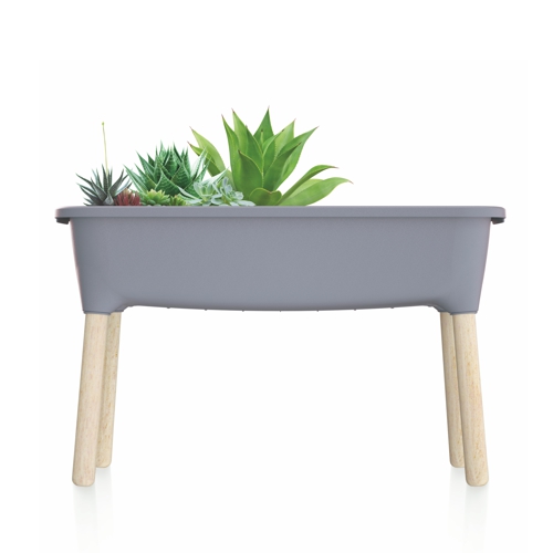 8119-8 Donica z drewnianymi nóżkami, szara |