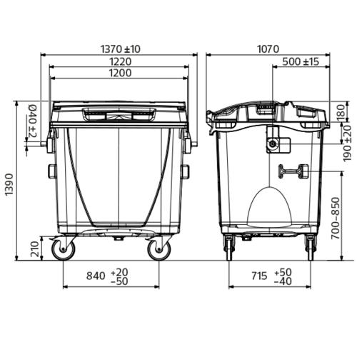 Kontener z tworzywa 1100 l. Płaskie wieko we wieku.
