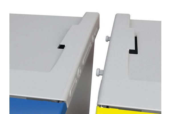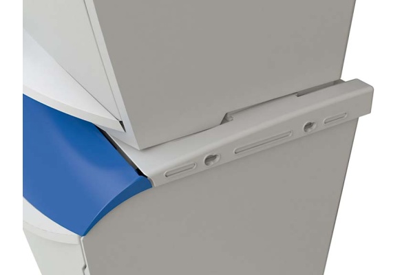 - Konstrukcja pojemników umożliwia połączenie zarówno w kierunku poziomym, jak też w pionowym, a przez to stworzenie stabilnej całości.