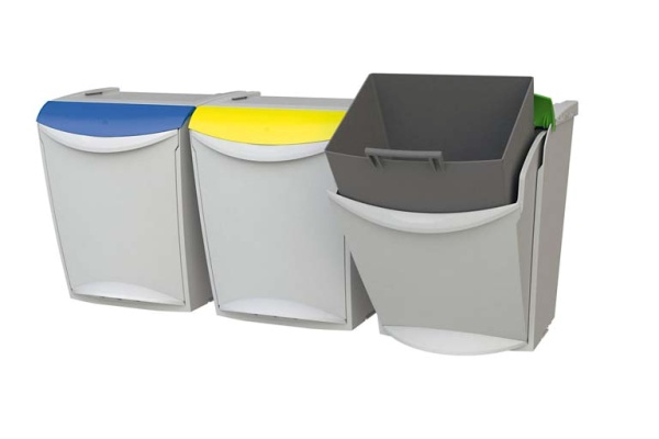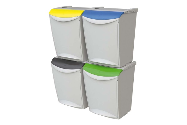 - Pokrywy w kolorze niebieskim, zielonym, czarnym i żółtym służą do szybkiej orientacji przy wkładaniu poszczególnych rodzajów odpadów.