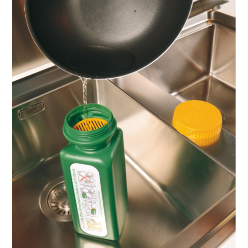 - Specjalny pojemnik plastikowy dla gospodarstw domowych do umieszczania zużytego oleju ze smażenia i konserw.