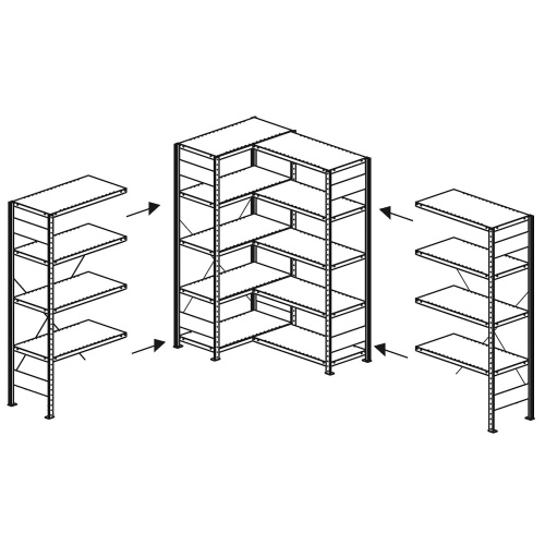 - Regały składają się z dwóch części narożnych.