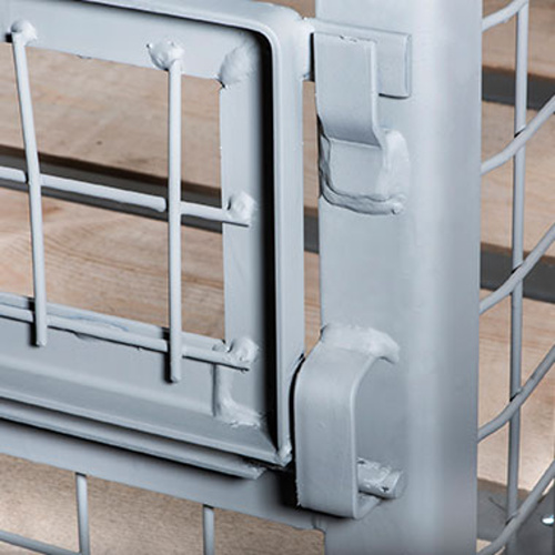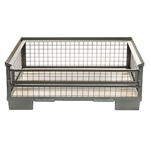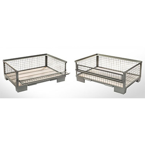 - Skrzynie tworzą rama podłogowa i ściany boczne z siatki. Są dostępne z otwieranym panelem bocznym.