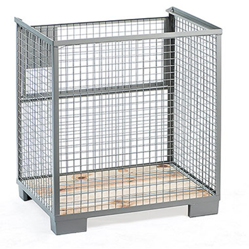 - Skrzynie tworzą rama podłogowa i ściany boczne z siatki. Są dostępne z otwieranym panelem bocznym.