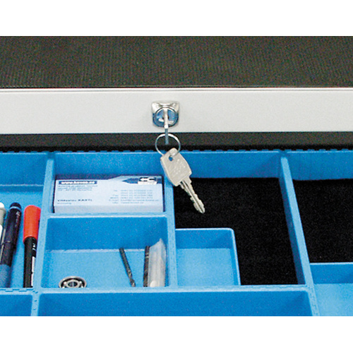 - Szafka posiada centralny zamek i blokadę szuflad.