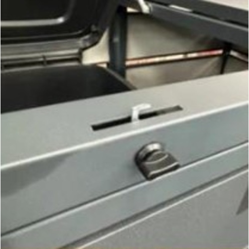 - Pokrywa z zabezpieczeniem w pozycji otwartej z możliwością blokowania pokrywy pojemnika łańcuszkiem dla łatwego otwarcia pojemnika.