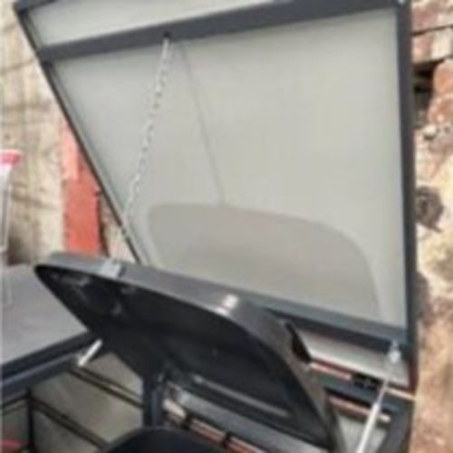 - Pokrywa z zabezpieczeniem w pozycji otwartej z możliwością blokowania pokrywy pojemnika łańcuszkiem dla łatwego otwarcia pojemnika.