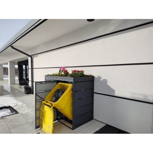 - W wewnętrznej części zainstalowany jest specjalny drut do łatwego wrzucania odpadów bez wyjmowania pojemnika z wiaty.