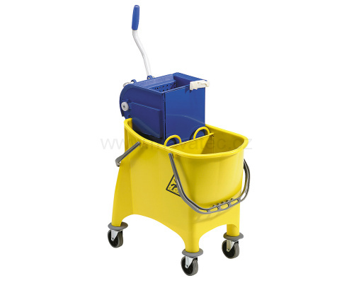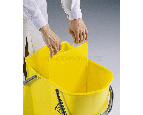 - Wózek do sprzątania jest wyposażony w przegrodę umożliwiającą oddzielenie wody brudnej od czystej,2 x 15 l.