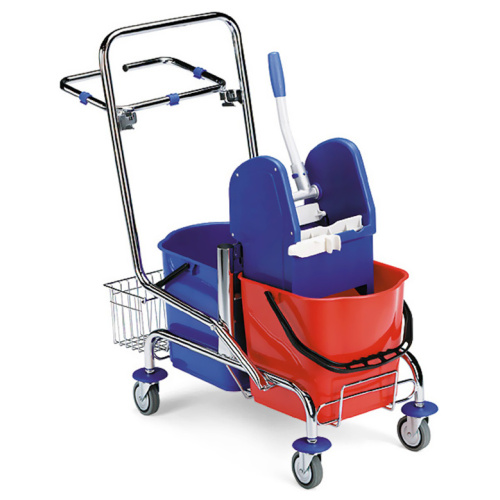 Wózek do sprzatania z chromowaną poreczą i uchwytem