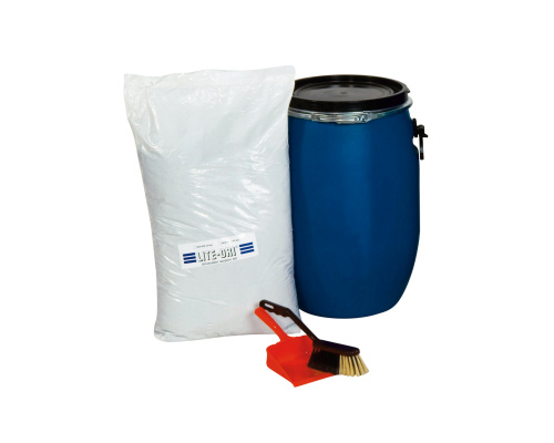 10 kg uniwersalny żwir LITE-DRI®, 1x łopatka, 1x zmiotkaręczna, 3x torebka, 3x naklejka ostrzegawcza ODPADY NIEBEZPIECZNE, 1x beczka plastikowa 60 l z kodem UN.